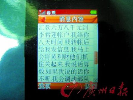接報后,民警發(fā)現(xiàn)該鎮(zhèn)一主要領(lǐng)導(dǎo)近段時間也先后4次接到自稱是“中紀(jì)委委員”的手機(jī)勒索短信,口氣一次比一次嚴(yán)厲,稱其手中有該鎮(zhèn)嚴(yán)重違法亂紀(jì)的錄像資料,如果想高枕無憂和高升的話,就趕緊匯款68000元到他指定的賬上。