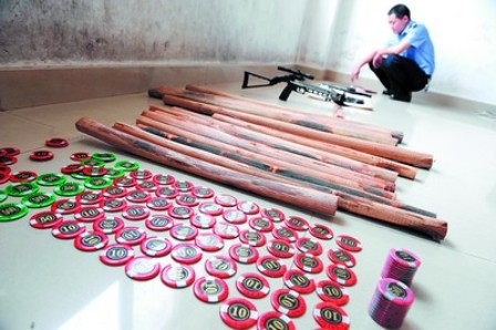 市公安局領(lǐng)導(dǎo)當(dāng)即命令專案組,全力防止這場械斗的發(fā)生。專案組在當(dāng)天下午迅速查明了案情。龍衛(wèi)軍綽號“龍霸草”,是一個“三進宮”的角色,2004年假釋后糾集社會閑散人員在長沙解放路某星級酒店開起地下賭場。去年10月8日下午,一名在所謂“黑道”上混的基建老板袁尚應(yīng)邀到龍衛(wèi)軍開設(shè)的地下賭場打兩人麻將賭博,從當(dāng)天下午到去年10月10日凌晨,經(jīng)過整整兩天兩夜的搏殺,袁尚輸欠龍衛(wèi)軍400多萬元賭債。