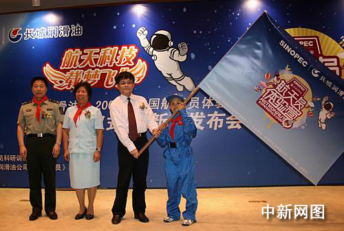中新網(wǎng)成都5月21日電(記者楊杰)21日下午,航天英雄、中國(guó)航天員科研訓(xùn)練中心副主任楊利偉將軍等嘉賓在成都向來(lái)自“5•12地震”震中映秀的李俊鵬同學(xué)授航天員體驗(yàn)營(yíng)營(yíng)旗,拉開了“長(zhǎng)城潤(rùn)滑油• 2009年中國(guó)航天員體驗(yàn)營(yíng)”四川招募活動(dòng)大幕。這是“中國(guó)航天員體驗(yàn)營(yíng)”首次在四川地區(qū)公開選拔營(yíng)員,10名幸運(yùn)者將在暑期當(dāng)一回實(shí)實(shí)在在的“太空人”。