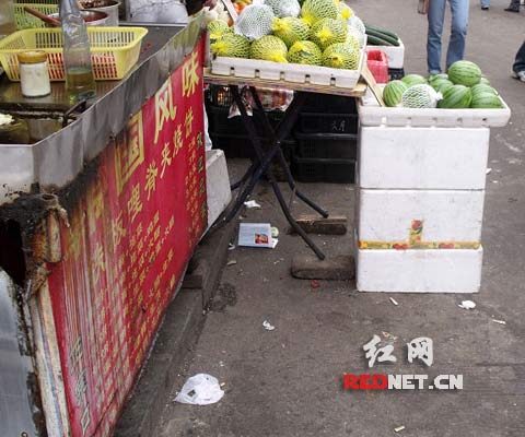 記者再去采訪時(shí),發(fā)現(xiàn)兩家店面的中間地帶,仍然擺放兩壘西瓜:一壘西瓜擺放在放桌上;緊挨著還有一壘白色泡沫盒疊起來(lái)的西瓜,仍有逼近路中央的趨勢(shì)。記者問到被砸壞的工具和被砸掉的雞蛋、果醬、辣椒等原料的賠償問題時(shí),包父嘆了口氣說(shuō):“沒有賠償,大家鄰居一場(chǎng),這些也就算了,但是心里還是有個(gè)小要求,希望水果店店主能把隔在中間的西瓜挪開些,方便大家走路!