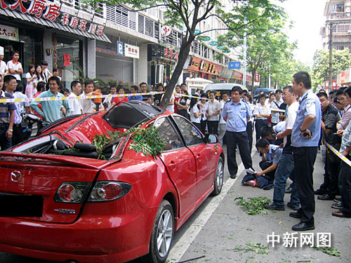 據(jù)現(xiàn)場目擊者介紹,墜樓者是一名女性,年齡大概在30歲左右,墜樓時剛好被樹擋了一下,落在一輛紅色轎車上,當(dāng)時還有一些意識。