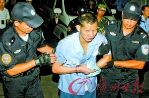 杜秋發(fā):沒(méi)有。過(guò)去我們從審訊他的同伙中知道成瑞龍雖然六親不認(rèn),但心里還是牽掛自己的兒子的,當(dāng)我們問(wèn)他有什么要求時(shí),他回答說(shuō):“我最關(guān)心我仔,希望能見(jiàn)到他。”我當(dāng)時(shí)就說(shuō):“等回到佛山,他們會(huì)盡量安排你們見(jiàn)面的,而且我們看到你兒子了,長(zhǎng)得很高大很帥。”他的情緒很快就恢復(fù)平靜,對(duì)殺害佛山民警案件供認(rèn)不諱,后來(lái)一路押解回來(lái)也很順利。