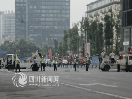 記者在現(xiàn)場未見到救護車輛。現(xiàn)場有近10輛消防車,交警正在疏導交通,成都主干道人民南路二段交通并未中斷。