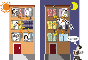 “誰(shuí)叫他們不讓我有好覺睡!4—3的住戶名叫陳強(qiáng)(化名)稱,兩個(gè)多月前,他被調(diào)派上夜班,每晚10點(diǎn)上班,第二天清晨才下班回家。回家后,陳強(qiáng)拖著疲憊的身軀剛一躺下,就聽到一些住戶家傳來(lái)的電視聲、廣播聲、唱歌聲、小孩的哭聲,這一切吵得陳強(qiáng)無(wú)法安睡,幾乎要在床上折騰幾個(gè)小時(shí)后,陳強(qiáng)才能勉強(qiáng)入睡。