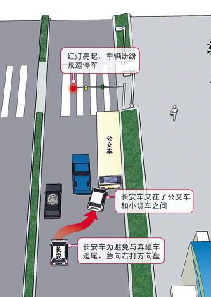 司機(jī):一是對(duì)著我行駛的車道撞過(guò)去,前面就是輛奔馳;要不然,就卡在公交車和貨車中間那個(gè)位置。我選擇了后者。