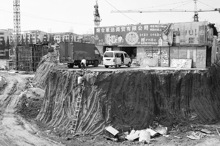 位于煙臺市只楚路149號的煙臺惠達(dá)商貿(mào)有限公司,如今被孤零零地?cái)R置在一座八九米高的土臺上,土臺的四壁,挖掘機(jī)留下的道道“青筋”觸目驚心,隨時有垮塌的危險(xiǎn)。煙臺市房管局拆遷辦表示,商業(yè)性質(zhì)的拆遷糾紛,不能使用暴力,如果協(xié)商不成,還要協(xié)商、再協(xié)商,直到協(xié)商出結(jié)果。