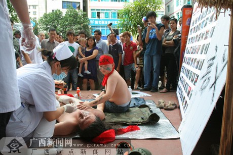 16時46分,廣西中醫(yī)附屬醫(yī)院的救護(hù)車到現(xiàn)場對商戶劉先生進(jìn)行脈搏和血壓的測量,并建議馬上去醫(yī)院。在多次表明要堅(jiān)持等城管相關(guān)領(lǐng)導(dǎo)來給大家做合理解釋時,商戶劉先生昏迷。在周圍群眾的幫助下,商戶劉先生被抬上救護(hù)車,送往廣西中醫(yī)附屬醫(yī)院救治。