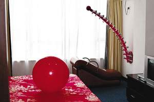 五十多平方米的房間內(nèi),燈光溫馨曖昧,一張大紅床格外引人注目,情趣用品一應(yīng)俱全。記者看到,跟一般的酒店里陳設(shè)不同的是,房間里有很多奇形怪狀的家具。據(jù)周某介紹,除了床是電動(dòng)床以外,還有歡樂椅、情趣球、S形沙發(fā)等!斑@些可不是體操運(yùn)動(dòng)器材,而是情趣酒店的特別設(shè)施,專門供夫妻情侶性生活用的!