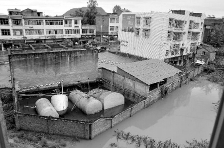 2009年6月19日8時(shí)許,四川省閬中市老觀鎮(zhèn)加油站因近日連降大雨,導(dǎo)致加油站附近排水系統(tǒng)阻塞,致使周圍大量雨水涌入油罐池。分別儲(chǔ)存柴油32噸、93汽油10噸、90汽油10噸的4個(gè)油罐上浮移位,其中一個(gè)發(fā)生傾斜,連接油罐的輸油管道在浮力作用下斷裂,引發(fā)罐內(nèi)油品泄漏。