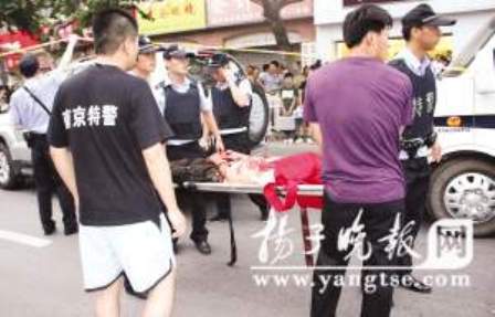 昨天下午5點多,南京玄武區(qū)太平門街10號某食品店內發(fā)生一起血案,一名男青年持刀捅了一位女高中生十幾刀,然后將該學生劫為人質。5:42,警方接報警趕到現(xiàn)場。在僵持了近一個小時后,警察兩槍命中劫犯。據(jù)了解男青年籍貫貴州,姓余;被捅女學生是南京34中高一學生,姓房。兩個人之前是在網(wǎng)上認識的,根據(jù)警方信息,血案系兩人戀愛關系破裂而引發(fā)。