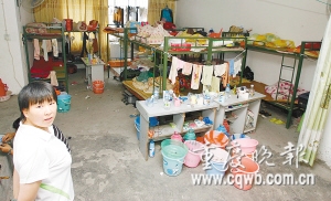 為了展示室內(nèi)今后直觀的布設(shè),她找來另一名女教師,打開旁邊同是改作學生公寓,并住了學生的一間門面。該門面被隔成上下兩層,共鋪了10多個床位!芭鰜砗蠼^對和這個一樣,每人每學期600元!彼告誡,下期學生有房子住就不錯了,不要太挑。