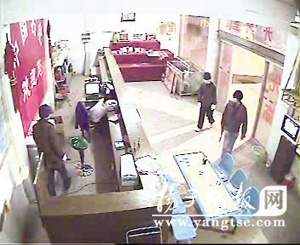 5月8日凌晨2時(shí)38分左右,幾輛大卡車從句容白兔一加油站加油后,剛一離開,4個(gè)蒙面戴口罩和手套的“黑影”,突然閃身闖進(jìn)加油站內(nèi),兩人直奔收銀臺(tái),其中一人徑直走到收銀員許某的背后,用刀架在許某的脖子上,本能的反應(yīng)使許某剛想起身,雪亮的尖刀便刺穿了他的頸部動(dòng)脈,隨后,還沒等許某來得及反抗,歹徒又連續(xù)在許某的背部連捅幾刀,許某沒有發(fā)出一聲,便倒在地上。另外2人則奔向另外一間休息室,工作人員辜某正在沙發(fā)上睡覺,2人順手就用被子將辜某的頭部緊緊捂住,并大聲恐嚇?biāo)辉S出聲,否則就捅死他。