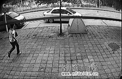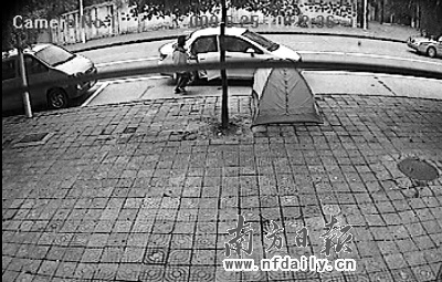 監(jiān)控錄像顯示,昨日上午10時(shí)22分20秒,一輛白色廣本飛度緩緩?fù)T跂|城街道東平街旭陽冷氣店外的馬路上。一名身高1.75米左右、身穿休閑衣服、腳著運(yùn)動(dòng)鞋的男子,從副駕駛室下來,不動(dòng)聲色地走進(jìn)旭陽冷氣店。監(jiān)控錄像還顯示,廣本汽車?yán)锶祟^晃動(dòng),車內(nèi)至少有4名同伴。