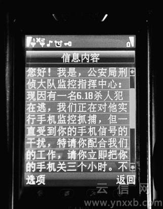 “您好!我是公安局刑偵大隊監(jiān)控指揮中心:現(xiàn)因有一名6.18殺人犯在逃……請你立即關(guān)閉手機三小時,否則拘留七至十五天!苯拥竭@樣的短信后,岳代林相信了,關(guān)閉了手機。然而發(fā)短信的人卻利用他關(guān)電話的空當(dāng),向他身在四川的家屬謊報他出了“車禍”。然而假的真不了,再高明的騙局遲早也要“露餡”。