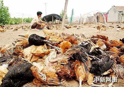記者今天見到家住濱?h經(jīng)濟開發(fā)區(qū)工業(yè)園新區(qū)社區(qū)三組的家禽養(yǎng)殖戶張寶軍時,他的臉上難掩痛苦之色。他將記者帶到死雞現(xiàn)場,站在距離雞圈五十米的地方就能聞到尸體腐爛的味道,雞圈里躺滿了死雞尸體,死雞雞冠發(fā)黑,瘦弱不堪,身上的羽毛疏松掉落,口中還有不明液體。張寶軍說,前些天大部分的死雞已被深埋或焚燒。