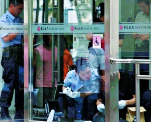 事發(fā)中國銀行位于北科大籃球場西側(cè),高兩層,分為對私業(yè)務(wù)區(qū)和基金業(yè)務(wù)區(qū)。昨日中午12時(shí)10分許,顧客王明(化名)進(jìn)入該行準(zhǔn)備提款。“三排座位上坐著四五個(gè)顧客,兩個(gè)開放的銀行窗口前各有人在辦業(yè)務(wù)。”王明說。