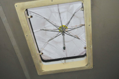 近日,網(wǎng)友在大渝網(wǎng)上發(fā)帖《公交車內(nèi)雨傘遮頭》,該網(wǎng)友稱,前幾天出門,自己上了一輛373路公交車,剛一坐到位置上,頓時被雷倒了。他稱,公交車上的天窗竟然變成了一把雨傘,雖然有點夸張,倒也還算密不透風。該網(wǎng)友笑稱:“這一定是重慶新發(fā)明的天窗,方便在車子燃燒的時候逃生!