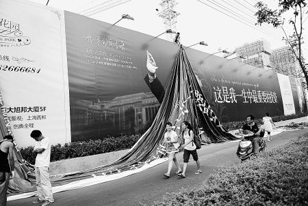 昨晚7時許,記者再次來到該樓盤外,看到很多工人正在做準備,他們要將一幅新制作的廣告覆蓋在上面。新廣告上傳達的內(nèi)容和相關(guān)字樣沒什么變化,只是將名人頭像換成了“股神說”“科學家說”等字樣。幾位工作人員說,聽說這幾幅廣告涉嫌侵權(quán),公司才緊急將其換掉的。 (記者郭欣 實習生胡歲歲)