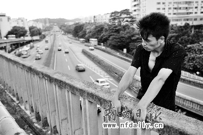 隨后,記者慢慢靠近該男子,勸導(dǎo)其不要采用極端行為。在簡(jiǎn)單的對(duì)話中,他告訴記者自己來(lái)自重慶,前幾天在蓮花北某社區(qū)推銷時(shí)被該社區(qū)的保安所打,覺(jué)得自己雖是去推銷但無(wú)端被打難以接受,于是到蓮花派出所去報(bào)案,希望能還一個(gè)公道。但去了幾次,都沒(méi)有被受理。小伙子越想越生氣,遂產(chǎn)生了到皇木崗立交橋上跳橋討說(shuō)法的想法。