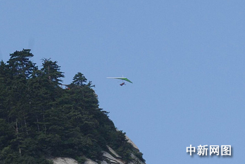 中新網(wǎng)陜西華山7月18日電(記者 冽瑋 )7月18日上午,號(hào)稱“中國(guó)第一飛人”、年已66歲的衣瑞龍駕駛無(wú)動(dòng)力三角翼滑翔機(jī)成功飛越了西岳華山。他是目前中國(guó)用三角翼飛翔的第一人,是至今國(guó)內(nèi)飛過(guò)高山最多的探險(xiǎn)家,也是他第五次飛越這座被譽(yù)為“天下奇險(xiǎn)第一山”。