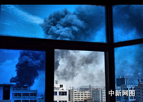 倉(cāng)庫(kù)內(nèi)裝有大量成品貨物,貨物燃燒產(chǎn)生了大量濃煙,整個(gè)事故現(xiàn)場(chǎng)濃煙滾滾。據(jù)一位現(xiàn)場(chǎng)知情者透露,濃煙之大,前所未有,“整個(gè)溫州市區(qū)幾乎都能看見火災(zāi)上空的濃煙!奔由犀F(xiàn)場(chǎng)風(fēng)向變化不定,空氣中彌漫著刺鼻的化工氣味。
