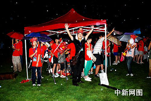 烏克蘭日全食觀測隊(duì)、俄羅斯觀測隊(duì)、北京日全食觀測隊(duì)……各個(gè)隊(duì)伍在雨中緊張地等待著,現(xiàn)場的喇叭里不斷傳來其他觀測點(diǎn)的最新消息,然而8:22分初虧的時(shí)刻到來時(shí),雨未停。終于9:35,日全食的一刻天全部黑了下來,雖然看不到,但現(xiàn)場還是響起了持續(xù)不斷的歡呼和尖叫聲,五分鐘的時(shí)間里,黑暗的山坡上閃關(guān)燈不斷,儼然一個(gè)“巨星演唱會”的陣勢。