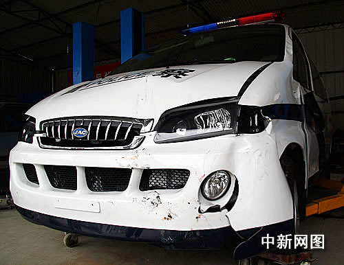 中新網鹽城七月二十七日電(于從文 童盛)七月二十五日下午三點二十分左右,在鹽城市建湖縣湖中南路和森達路交叉處,一輛車牌號為蘇JB一六五警的該縣人民檢察院警車由南向北高速駛過,在與一輛助力車發(fā)生碰撞后沖進人行道,短短五十米距離內連撞三人,之后沖上路崖,四個輪胎全部爆胎,路崖邊的道路指示牌也被當場撞斷。
