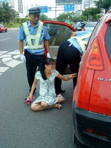 昨日上午,?谑泄簿纸痪ш犔厍诖箨犆窬邶埨ツ下泛图t城湖路一帶對交通違法情況進行檢查。上午9時30分許,一輛車牌號碼為瓊AE××60的哈飛路寶小轎車從紅城湖路拐向龍昆南路,沿省婦幼保健院路段行駛。在紅城湖路拐彎處,執(zhí)法交警看到該車駕駛員未系安全帶,于是在該車行駛到省婦幼保健院門口路段時,示意該車停下接受檢查。