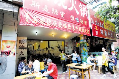 昨天下午,記者根據(jù)該帖,在江北建北八支路找到了這家火鍋店,據(jù)該店店員小王介紹,橫幅掛于一周前,是店老板掛上去的,但現(xiàn)在老板去外地出差了。她說,她也不知道這則標(biāo)語是什么意思,只是發(fā)現(xiàn)這句標(biāo)語掛上去后,許多來吃火鍋的人,總喜歡指著標(biāo)語哈哈大笑!百Z君鵬可能是我們老板的朋友吧!绷硪晃粏T工如是告訴記者。