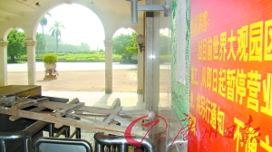 每個人都知道這一天遲早會到來,但很多人都沒想到會來得這么快!曾被譽為廣州旅游業(yè)的“月亮工程”的世界大觀,未能度過第15個生日便轟然倒下,開始無限期暫停營業(yè)。記者昨天看到,世界大觀偌大的園區(qū)已經拒絕任何游客進入,只剩下一兩個保安在守園。