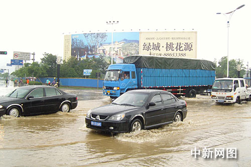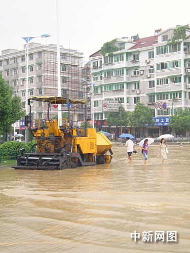 中新網(wǎng)杭州8月10日電(記者 龔讀法 見習(xí)記者 王磊 實習(xí)生 馬杰)8月9日,受第八號臺風(fēng)“莫拉克”影響,杭州降水量劇增,杭州不少道路遭雨水淹沒。8月10日,“莫拉克”對杭州的影響開始減弱,杭州道路積水有所緩和,而之前積水最嚴(yán)重的天目山路永和路口足膝的積水,也開始下降,各部門正積極排澇工作中。