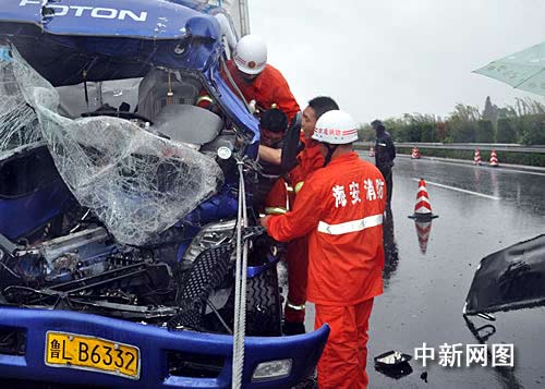 中新網(wǎng)南通8月10日電 (裘明明 王如海) 今天上午,江蘇南通沿海高速海安段兩輛貨車發(fā)生追尾事故,一名駕駛員被困,當?shù)叵拦俦苤笥瓿晒⒈焕藛T救出。警方提醒,近期受臺風影響,降水較多,廣大駕駛員朋友更要注意安全行車。
