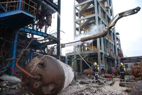 8月18日下午17時(shí)許,金華市湯溪鎮(zhèn)的婺城開發(fā)區(qū)浙江星騰化工有限公司一車間發(fā)生爆炸事故,造成該廠1人死亡,2名人員受傷。而爆炸產(chǎn)生的沖擊波,殃及隔壁數(shù)家工廠,其中距離爆炸點(diǎn)較近的詹士機(jī)配廠損失較大。