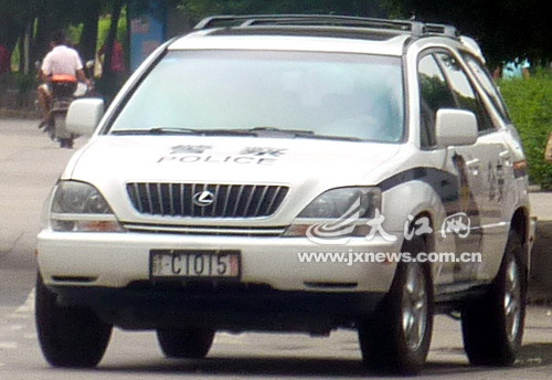 近日,網(wǎng)民“事實(shí)新聞”在江西論壇上發(fā)表的一篇帖子說:“那天上街突然發(fā)現(xiàn)一臺豪華的日系雷克薩斯凌志RX300越野警車,此警車系江西宜春地區(qū)的公安牌贛C-1015警。但是此警車為什么沒有警燈?為什么沒有警車尾部的編號呢?我懷疑是臺假警車。現(xiàn)請江西省公安廳或者是宜春警方出來給廣大的網(wǎng)民解釋一下可以嗎?”他同時(shí)將列出了該車參考價(jià):62萬~68萬。
