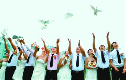 和邵利平夫婦同樣激動的還有9對農(nóng)民工新人。市總工會相關(guān)負責人介紹,考慮到農(nóng)民工家中生活都比較困難,所以特意為10對新人的家屬報銷了往返車票,今后還將為農(nóng)民工免費舉辦更多的集體婚禮。