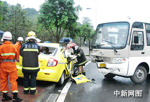 中新網(wǎng)重慶8月29日電 (張東清 孟幻)8月29日早上7時許,天降暴雨,一輛出租車在行駛到該市巴南區(qū)魚洞江濱路時,迎面與一輛交通車相撞。該事故造成3人重傷,1人輕傷。