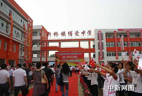 中新網(wǎng)綿陽(yáng)9月8日電(霍潺)中國(guó)航空工業(yè)集團(tuán)公司通過中國(guó)紅基會(huì)“中央企業(yè)援助基金”捐資1000萬元人民幣援建的綿陽(yáng)市游仙區(qū)新橋博愛中學(xué)8日竣工。在紅白相間的新教學(xué)樓前,同學(xué)們揮舞著手中的五星紅旗和中國(guó)紅基會(huì)會(huì)旗,齊聲唱著愛的奉獻(xiàn),感謝社會(huì)的無私關(guān)愛。