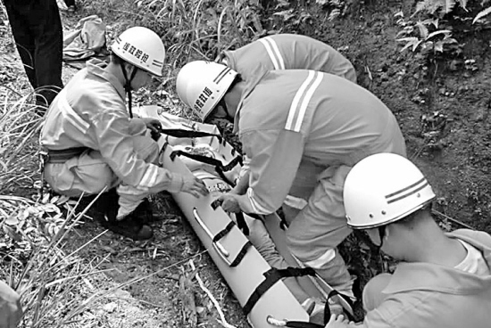 經(jīng)過1個小時營救,受傷女子終于獲救,隨即被抬到等候已久的救護(hù)車上。