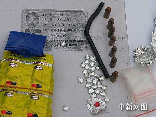 中新網(wǎng)長(zhǎng)沙9月16日電 (歐陽(yáng)浩亞 佘飛) 9月15日凌晨,一輛途經(jīng)湖南境內(nèi)長(zhǎng)常高速公路的小車因司機(jī)操作不當(dāng)撞向了中央隔離護(hù)欄,這原本是一起普通的車禍,但高速交警在處理事故過(guò)程中卻發(fā)現(xiàn)了重重疑點(diǎn),民警當(dāng)即對(duì)事故車輛和人員進(jìn)行檢查,竟搜出了手槍子彈、毒品、吸食工具等物品。