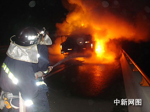 當(dāng)日凌晨,一輛由連云港開往廣州的大貨車在駛至寧連高速南京方向159公里處時(shí),駕駛員無意中通過后視鏡發(fā)現(xiàn)貨車左后輪胎起火,于是趕緊將車停靠到路邊,迅速取出滅火器進(jìn)行滅火并報(bào)警。但滅火器很快被用完,大火仍然猛烈燃燒,附近沒有任何水源,無奈之下,司機(jī)只得等待著消防官兵到來。