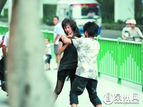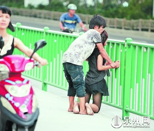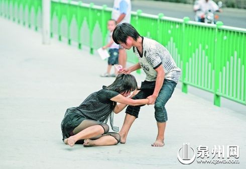 昨日下午4時(shí)15分許,泉州市區(qū)坪山路與寶洲街交界處的鑫億大廈樓下,一對(duì)雙雙赤腳的青年男女拉拉扯扯大聲爭(zhēng)吵,引來路人圍觀。