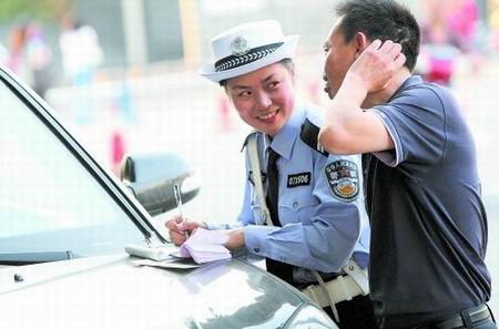 “咋個說嘛,都已經(jīng)被曝光了,肯定好多人都在罵我哇?”記者昨日找到了視頻中的奧拓車司機(jī)包先生。他說,那天下午,他駕著那輛奧拓車從鳳凰立交橋旁的某建筑工地出來,在寬巷子路口調(diào)頭時被胡玲攔下!爱(dāng)時就想跟她求情,但她的態(tài)度很好,一個勁地向我敬禮,執(zhí)法確實(shí)很嚴(yán)格!”包先生說,交警MM的親切和耐心,讓他根本發(fā)不起火,“拖了半小時,我只有虛心接受了!”