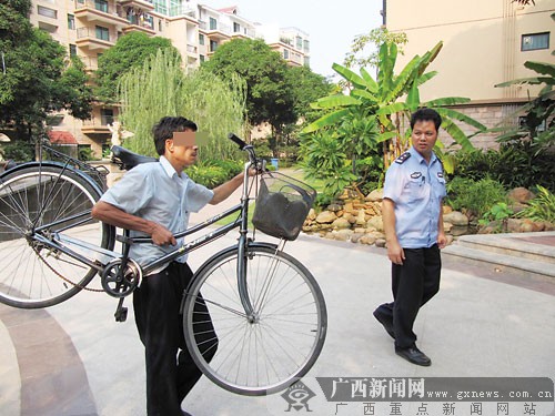 9月26日下午,一名小偷在(廣西)南寧市大學路嘉慧馨源小區(qū)偷得一輛自行車,準備推車離開時,卻遇到了車主——該小區(qū)的一名保安。車主抓住小偷后,讓其扛車在小區(qū)示眾。