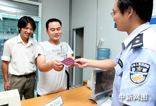 中新網(wǎng)舟山10月1日電 (記者 袁爽) 今天是《浙江省流動人口居住登記條例》正式實(shí)施的日子,在浙江舟山市做鋼筋工的安徽省阜陽小伙子周懷逸一大早便趕到當(dāng)?shù)嘏沙鏊,來領(lǐng)取這張夢寐以求的居住證,從今往后,最為新居民的周懷逸將和當(dāng)?shù)厝讼碛型鹊纳鐣U、公共服?wù)等具體方面的待遇。