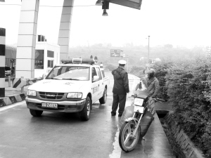 “摩托車不能進(jìn)入高速路喲!”昨天上午11時10分,長涪高速涪陵站(長涪高速30.5km)入口,一輛摩托車準(zhǔn)備駛?cè)敫咚俾罚徽谶M(jìn)行入口檢查的七大隊執(zhí)法隊員牟龍云、余浩洋發(fā)現(xiàn)并攔下?删驮趫(zhí)法人員對其勸說時,摩托車駕駛員突然加起油門,通過收費站下道口的欄桿空隙,強(qiáng)行闖入長涪高速路,并逆向行駛在超車道上。