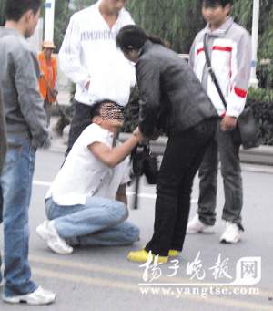 此時,年輕男子的父母趕到了現(xiàn)場,得知這輛車是兒子向朋友借的,當(dāng)晚外出玩耍,車上連他共兩男兩女,兒子又喝多了酒,借的車也被撞了,氣得上前連扇了他四五個耳光。男子看著母親,突然用頭猛地撞向轎車損壞的車頭,撞了四五下,被同伴拉住。他一轉(zhuǎn)身,又突然跪倒在母親面前,頭磕在地面上“啪啪”作響,額頭都磕得滲出了血,再次被同伴拉起。據(jù)男子的母親介紹,男子姓黃,他們一家來自徐州,在江東門一帶做小生意,但今年這一年,兒子連續(xù)多次惹事,以至于他父親在現(xiàn)場都不理他,而她則氣得一再說“不如撞死了干脆”。不過,說歸說,當(dāng)?shù)弥獙Ψ剿緳C被送到南京市第一醫(yī)院時,兩人又急忙趕到醫(yī)院看望對方。