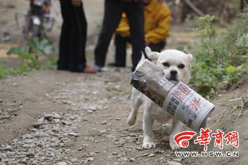 每天上午9時,給李爺爺家送華商報的投遞員張躍進,會準(zhǔn)時到達位于西安市南郊的東三爻堡。“報紙來咧!”站在李爺爺家門前一段50多米長的坡路下,張躍進會扯著嗓子吆喝一句。幾秒鐘后,張躍進和周圍的鄰居便會看到,一條黃白相間的小狗,從坡路上飛快地跑來,用嘴叼起張躍進遞來的報紙!翱烊!把報紙給爺爺!甭犃藦堒S進的話,小狗花花扭身徑直跑到李爺爺跟前,把報紙交到老人手中。