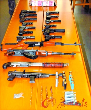 在被捕前,陳某國以粵東水產(chǎn)市場的身份,任保安主管!拔覀儌刹檎莆者@個團伙有槍支,但沒有想到有這么多!薄12·05”專案組組長羅美勝介紹說,陳某國名義上是保安主管,實際上就是辛氏兄弟為首犯罪團伙的打手,他對槍支有一定研究,甚至還可以對購買來的槍支中性能不好的進行修補改造。羅美勝告訴記者,在陳某國家中繳獲的槍支中甚至包括了一支仿AK47槍械,“我們還從沒有在汕頭見過。”