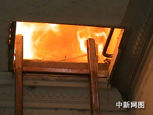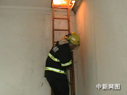 由于火場(chǎng)在樓頂、且入口處較小,消防隊(duì)員立即拿來(lái)了一把6米兩節(jié)拉梯,由一號(hào)車(chē)出一支水槍進(jìn)行強(qiáng)攻滅火。