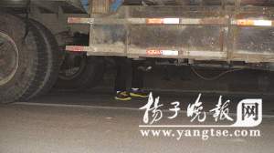 當(dāng)晚7點(diǎn)左右,記者趕到新北區(qū)惠山路某工地門口,只見一輛安徽牌照卡車停在路邊,周圍有很多市民,車底下豎著兩條人腿,原來是一名男子貓著腰坐在車底下。一名交警正彎著腰勸說卡車底下的人,可該男子就是不愿鉆出來。